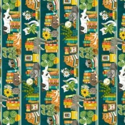 Bring warmth and charm to your projects with Cat Bookshelf fabric from Timeless Treasures! This delightful fabric features a repeating pattern of playful cats lounging contentedly among stacks of colourful books, potted plants, and charming decorative objects. Set against a soothing teal backdrop, the whimsical scene is perfect for cat lovers, bookworms, or anyone who appreciates a touch of cosy, creative flair.