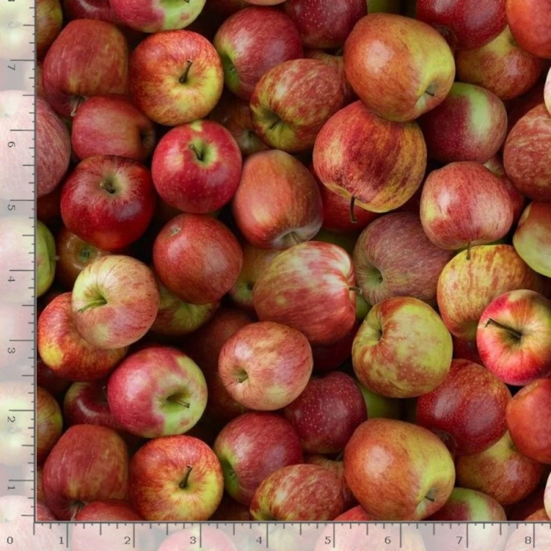Indulge in the vibrant beauty of nature with Timeless Treasures Packed Apples fabric! This eye-catching design showcases a rich display of lifelike red apples, layered together to create a full and striking effect. The deep reds and natural shading bring depth and realism, making this fabric a fantastic choice for fruit-themed projects.