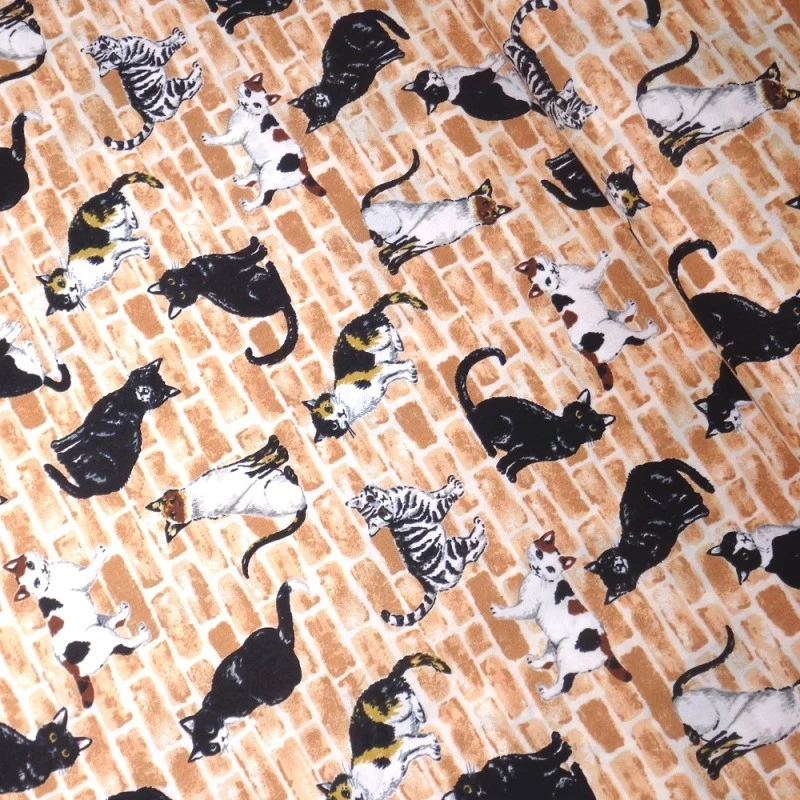 100% Japanese Cotton Fabric Sevenberry Kitty Cats Kittens Brick Wall Pet Animal