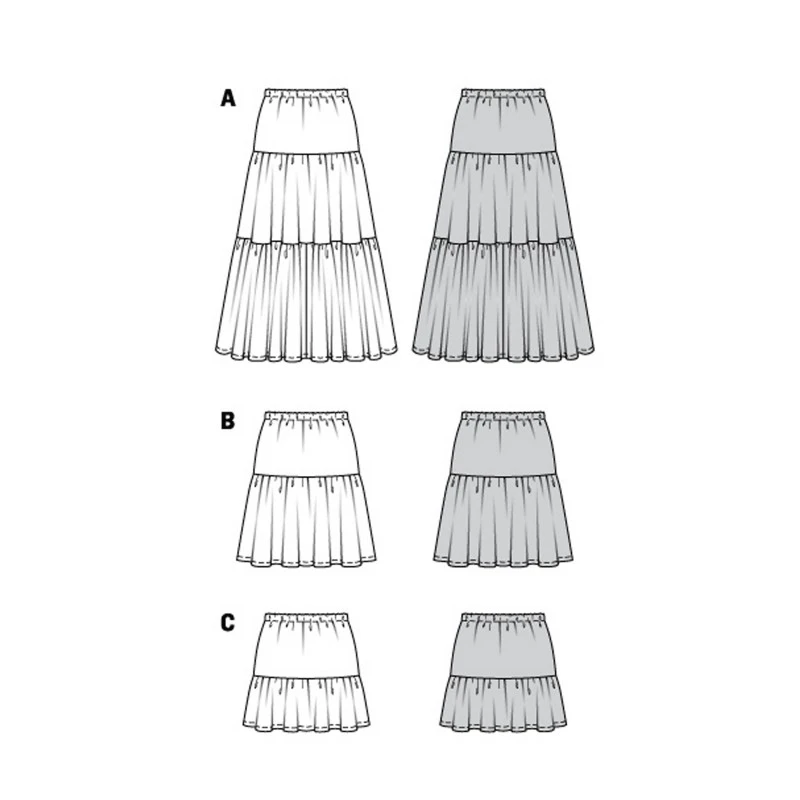 Pretty tiered skirts are easy to sew with with an elastic waist. Skirts like these, slim fitting