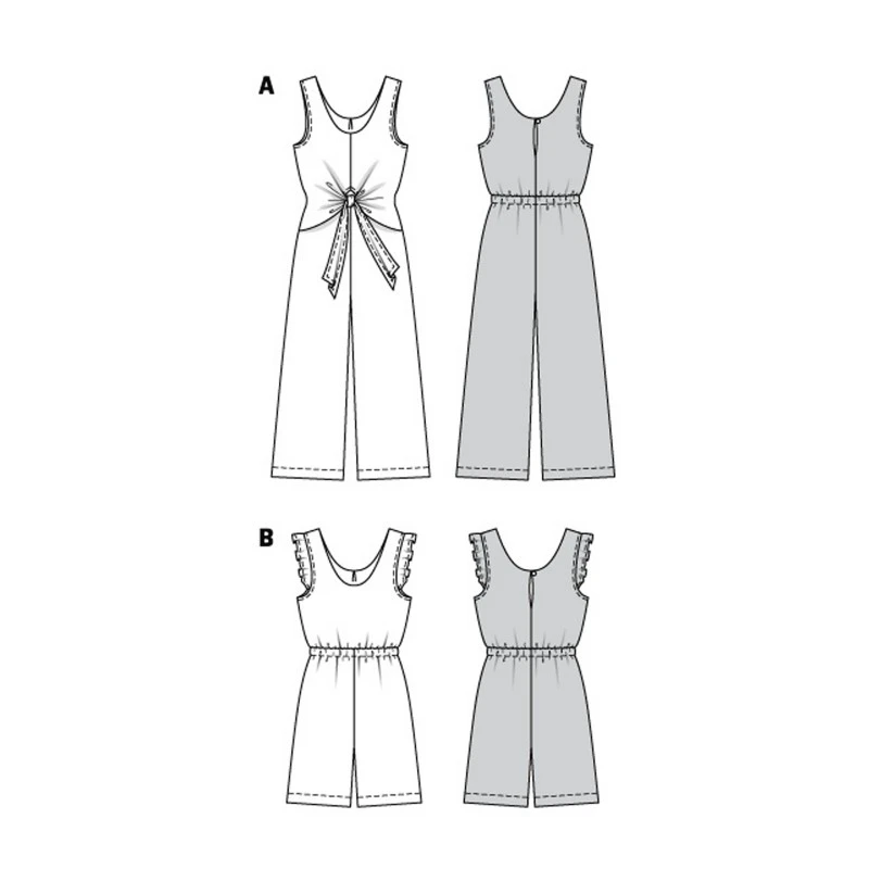 View B comes with Bermuda length shorts and fanciful frills at the armholes.