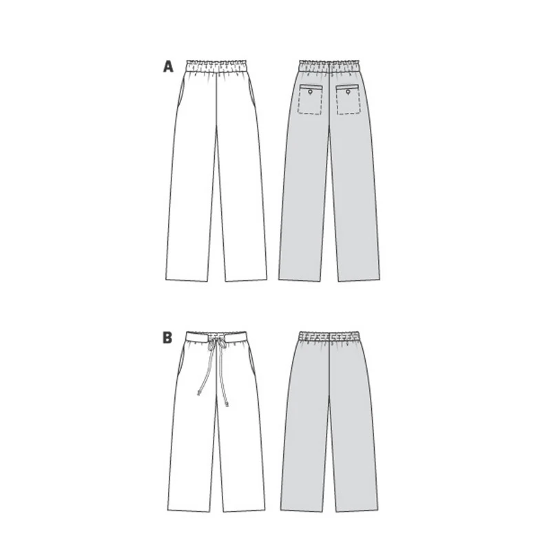 Wide cut and casual trousers/pants with elastic at the waist and in-seam pockets.