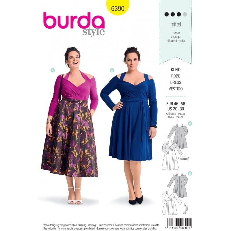 The extra wide neckline of this clever dress in retro style shows off pretty shoulders. Pleats at one side of the front are quite eye catching as well. The firm lining underneath gives the necessary shaping. The skirt is bell shaped.