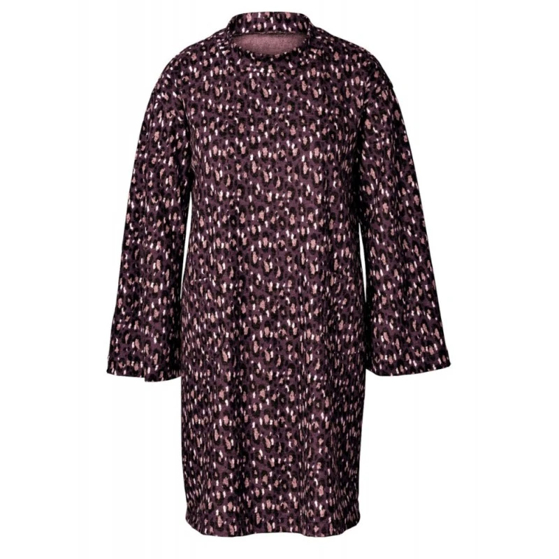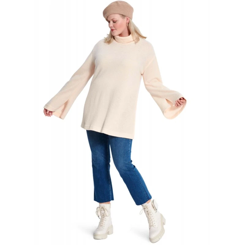 A-line slip-on dress with small stand collar and pockets. Top has wide sleeves with slit at cuff. Designed for stretch knit fabrics. Sew Rating: Easy.