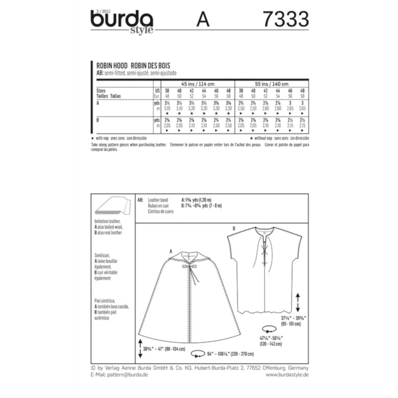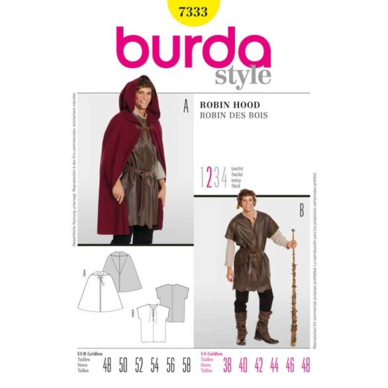 With Burda pattern 7333, you can craft a Cape and jacket costume that will make you look like a medieval shepherd, nave or hero. Conquer your next costume party in style!