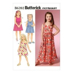 Dress and culottes have self-lined bodice, raised waist, skirt, narrow hem, and bow and knot. Topstitching. C: side slits. A, B and C: back zipper. D: front zipper.