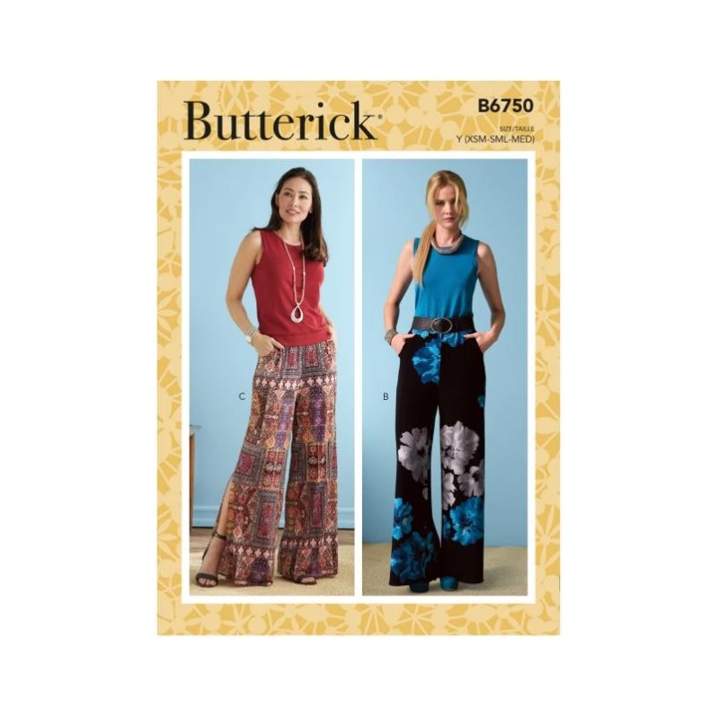 Loose-fitting shorts or trousers have elasticated waistband, pocket variations and narrow hem. A, B: Straight leg, cut on crosswise grain and side pockets. C: Side slits. C, D: Flared leg and rounded pockets.