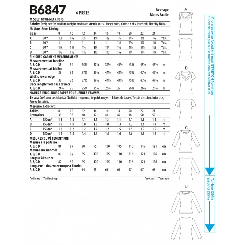 Butterick Sewing Pattern B6847 Misses’ Cow Neck Top Draped Front