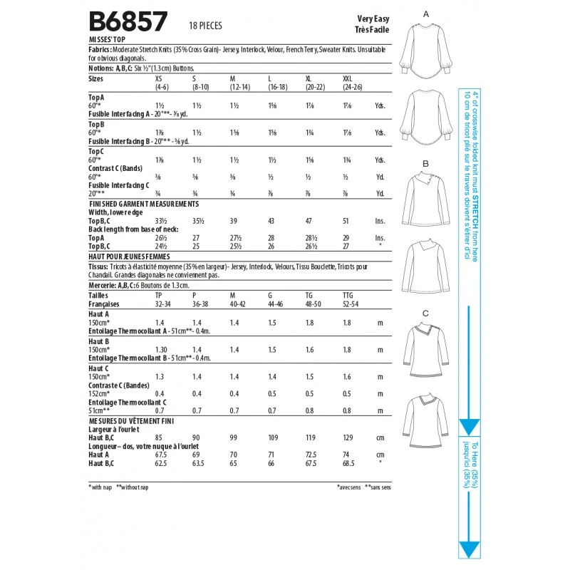 Misses’ pullover top has collar neckline and sleeve variations. Sewing Skill Rating: Very Easy.