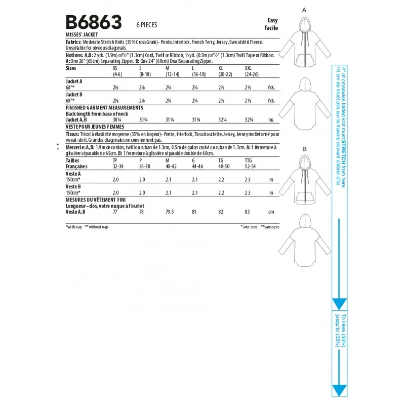 Butterick Sewing Pattern B6863 Misses Zip Up Hoodie Jacket Front Pockets