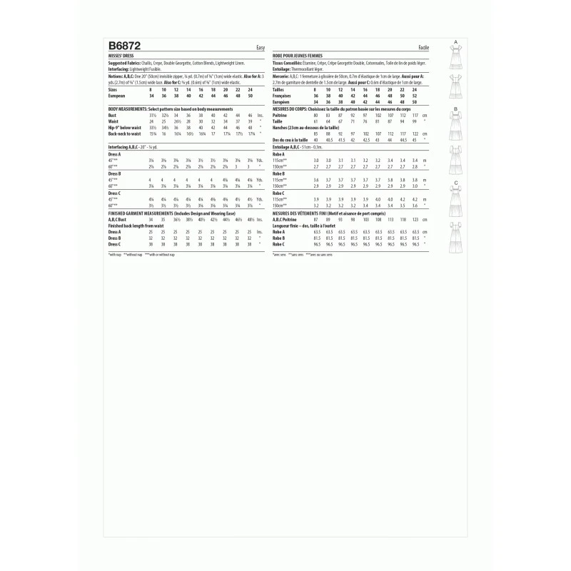 Butterick Sewing Pattern B6872 Misses’ High-Waist Dress with Square Neckline