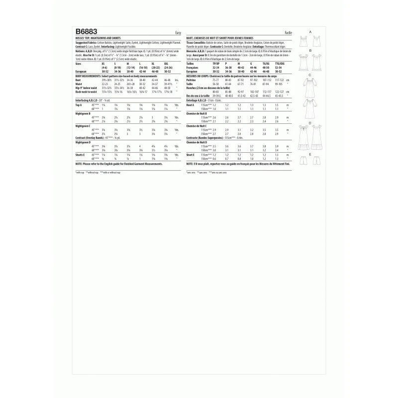 Butterick Sewing Pattern B6883 Misses’ Loose Fitting Top Nightie Pajamas
