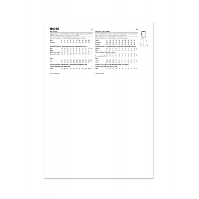 Soft or Crisp Fabrics such as Challis, Gingham, Jersey, Lightweight Double Knits, Polished Cotton, Polyester Double Knits, Seersucker, Surah. Sizes