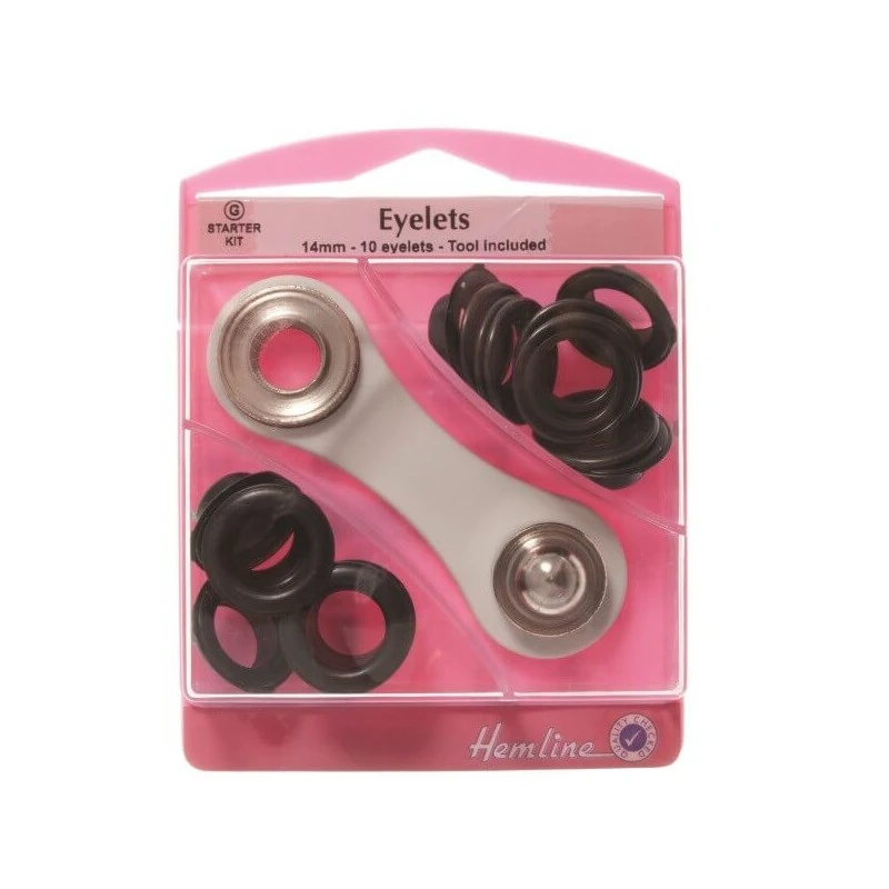 Starter set contains: eyelets, washer, hole punch and eyelet tool.