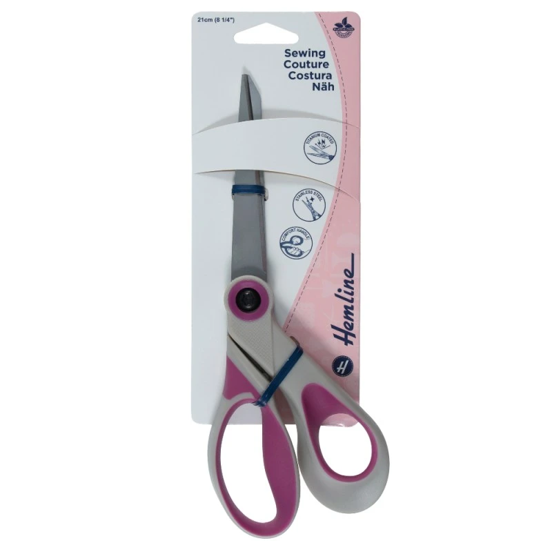 All titanium scissors feature stylish inlaid soft grip fully moulded handles, with superior titanium finishing for long lasting sharpness. Blades are knife edge design. 21cm/8.25in.
