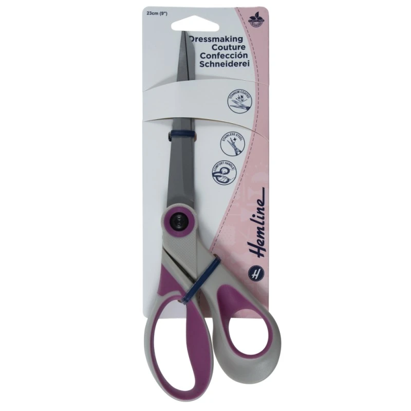 All titanium scissors feature stylish inlaid soft grip fully moulded handles, with superior titanium finishing for long lasting sharpness. Blades are knife edge design. 23cm/9in.