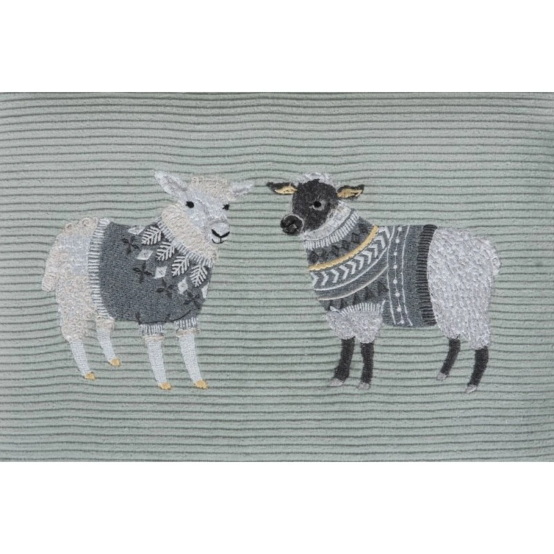 Medium-sized sewing box covered in cotton fabric with embroidered details.