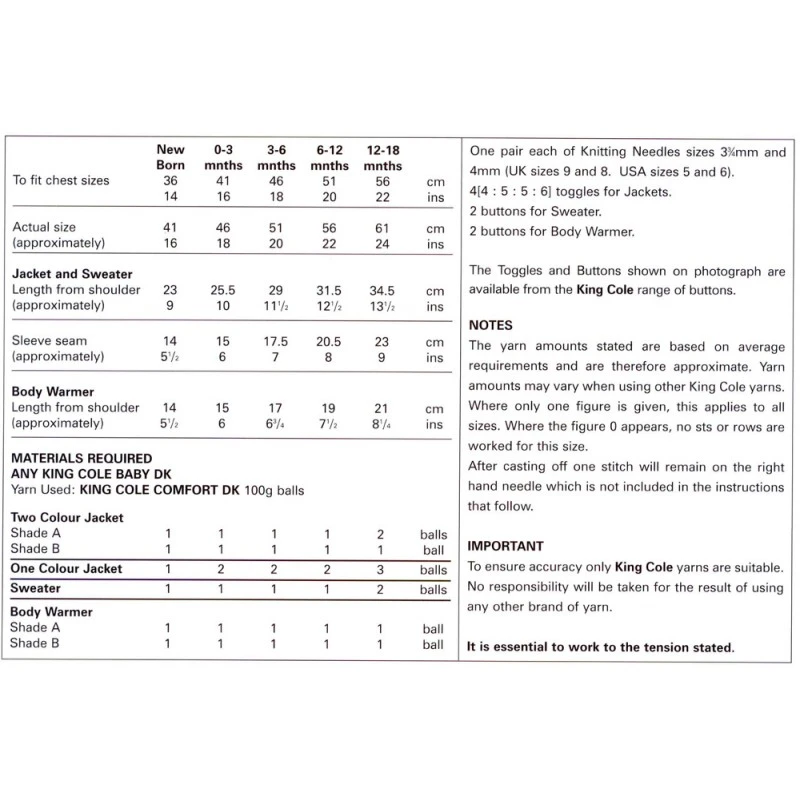 King Cole Knitting Pattern
