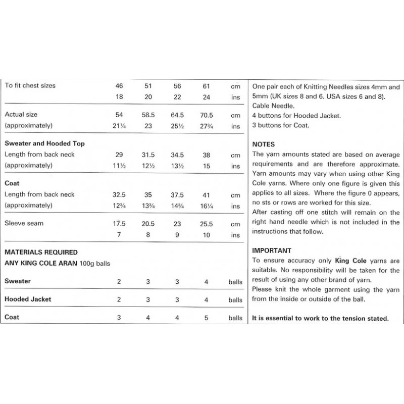 King Cole Knitting Pattern
