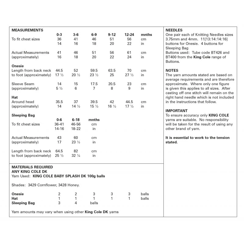 King Cole Knitting Pattern