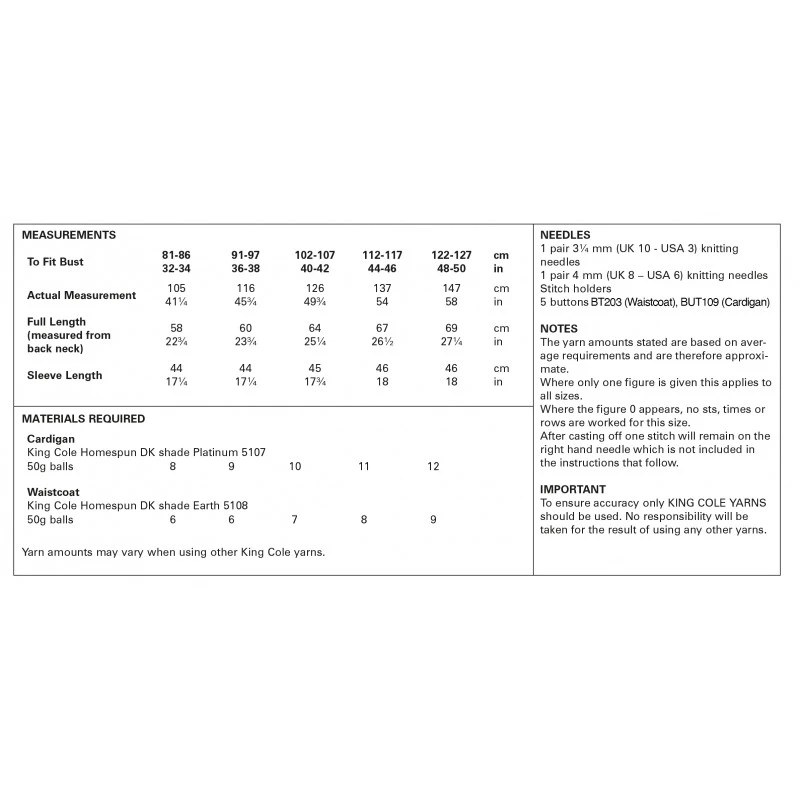 King Cole Knitting Pattern