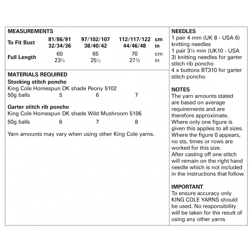 King Cole Knitting Pattern