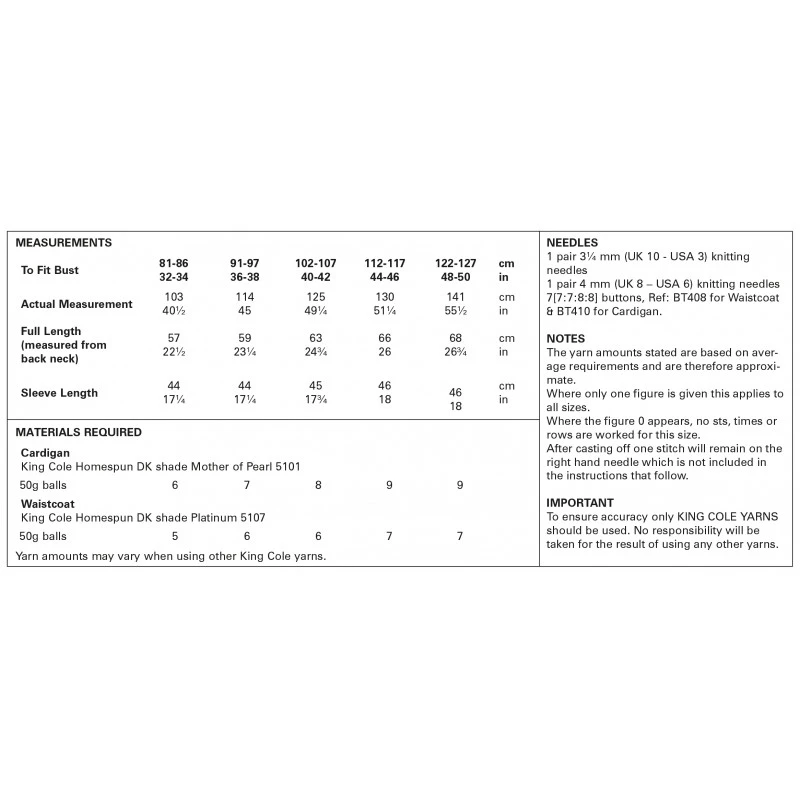 King Cole Knitting Pattern