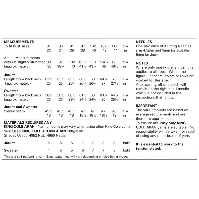King Cole Knitting Pattern