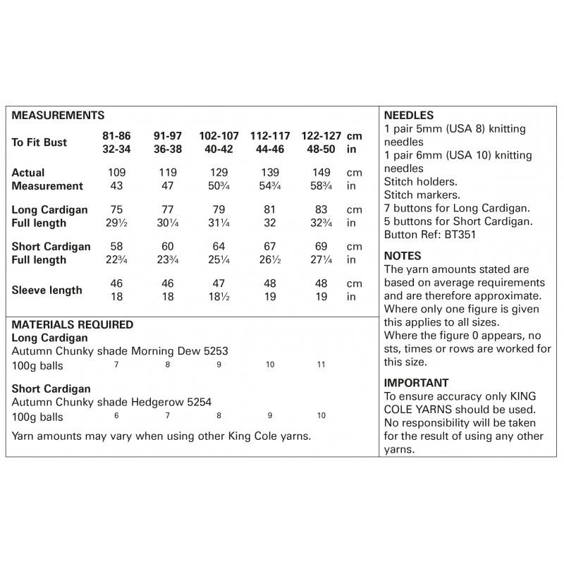 King Cole Knitting Pattern