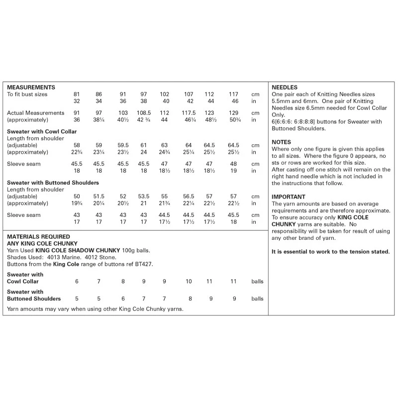 King Cole Knitting Pattern