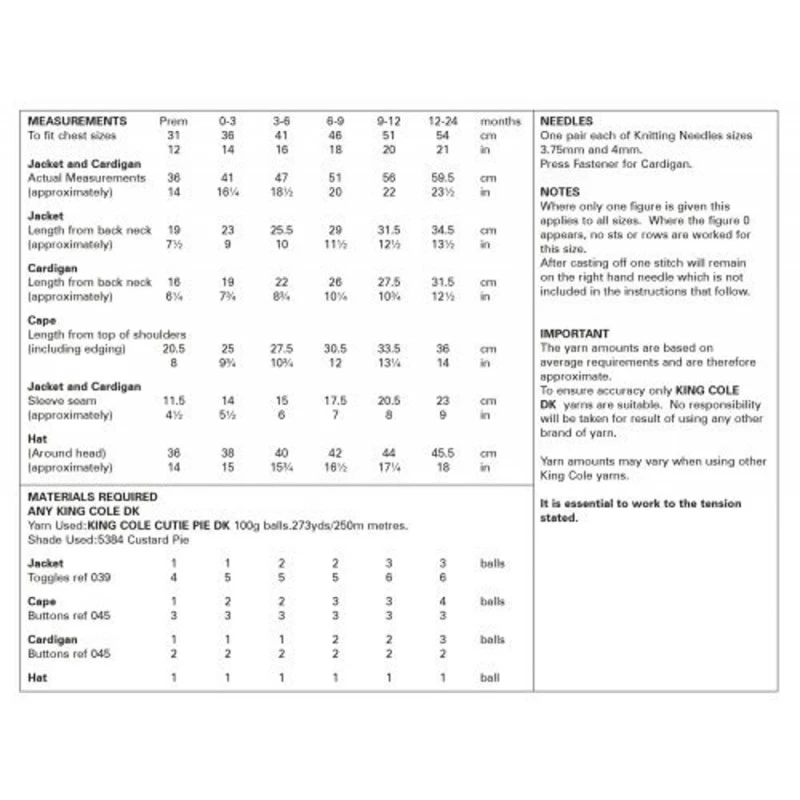 King Cole Knitting Pattern