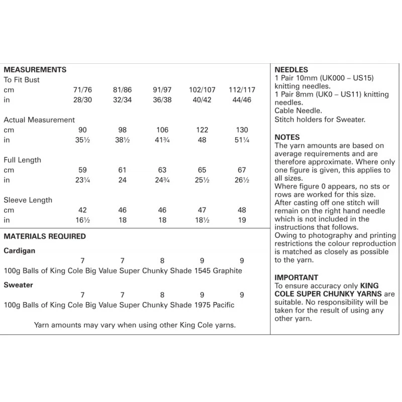 Knitting Pattern James C Brett JB851 Cable Jumper V Cardi Pattern Croftland Aran
