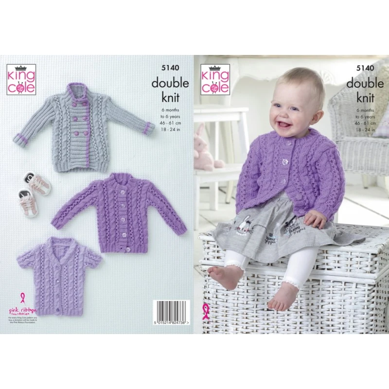 King Cole Knitting Pattern New Born Cardigans Knitted in Big Value Baby DK 5140