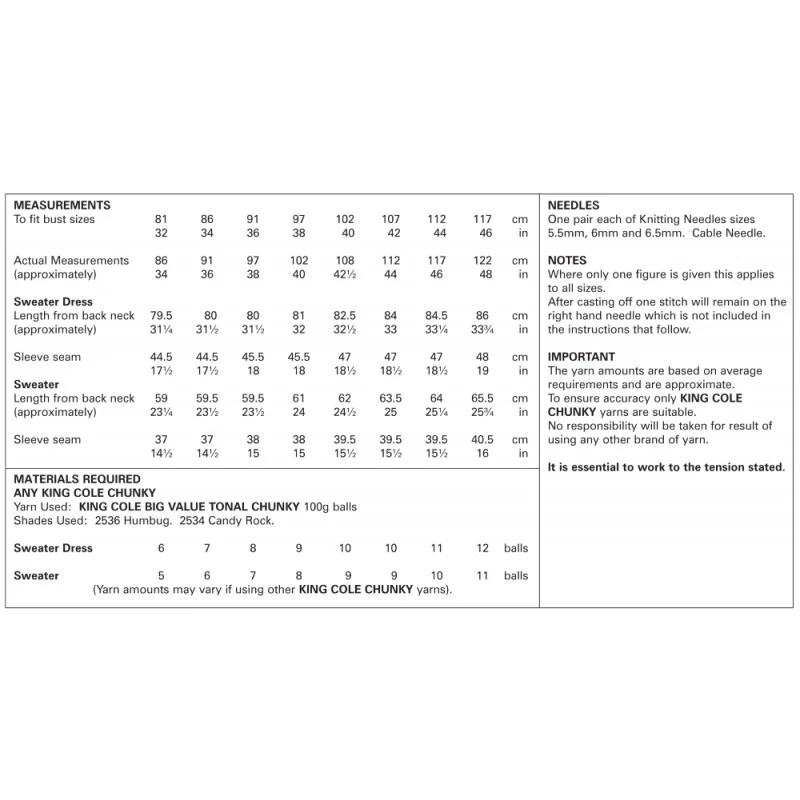 King Cole Knitting Pattern 5817 Women’s Accessories Knitted In Autumn Chunky
