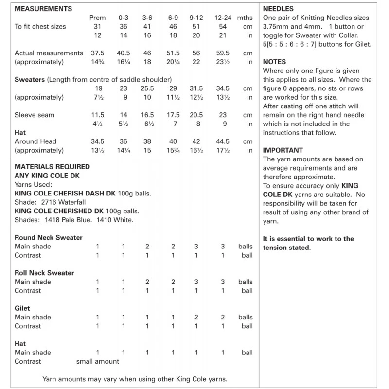 King Cole Knitting Pattern