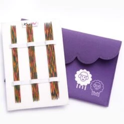 This set of double pointed Symfonie needles (aka ‘Sock Needles’) comes in an elegant purple color fabric case .