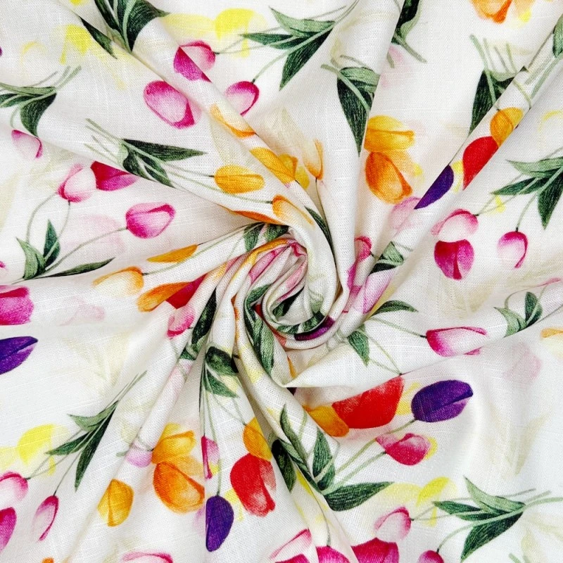As this fabric is woven, rather than knitted, it only has minimal stretch. The breathability of linen paired with the beautiful drape of viscose makes this fabric suitable for a range of projects including dresses, trousers, tops and more.