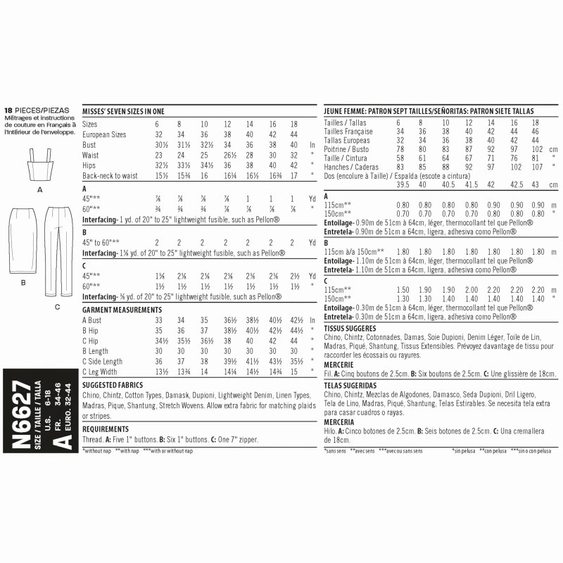 New Look Sewing Pattern N6627 Misses’ Close Fitting Top, Skirt, Trousers