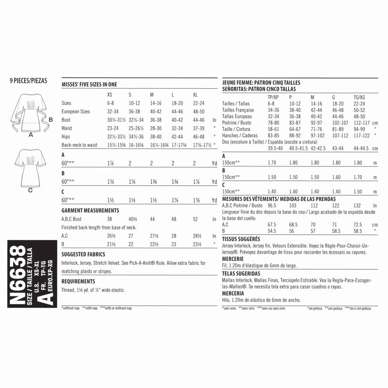 Misses’ Knit Tops TunicMisses’ tops. Pull-on tunic or top, with grown-on sleeves in two lengths. Seamed below bust. Optional tie detail. Designed for stretch knits.