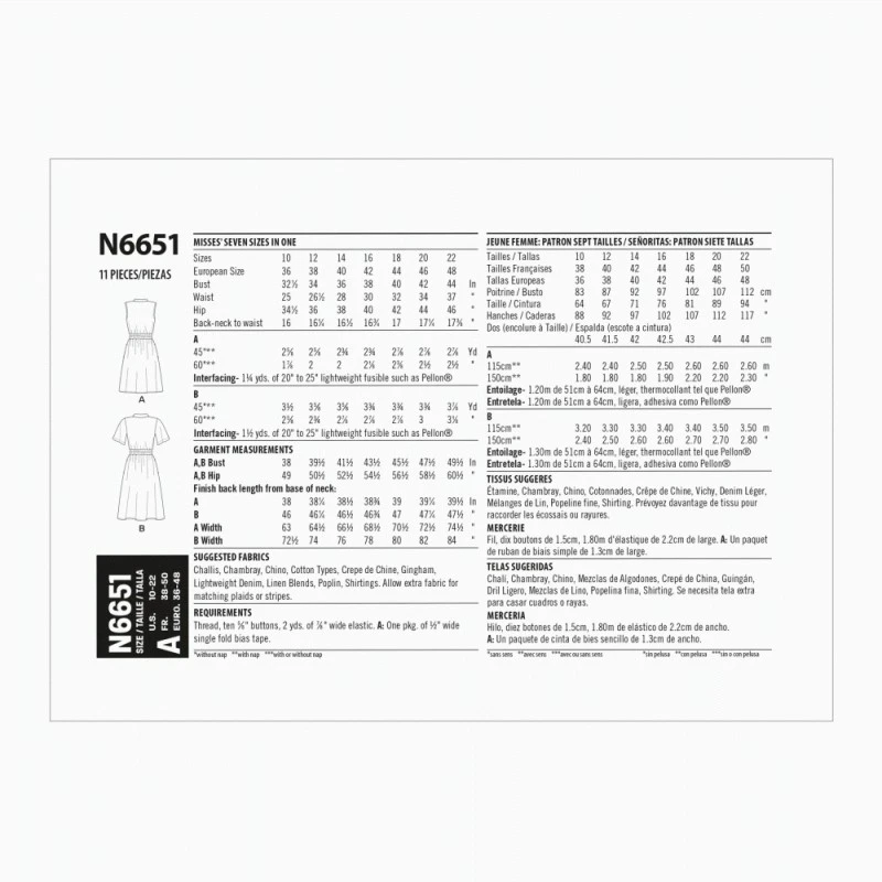New Look Sewing Pattern N6651 Misses’ Button Front Dress