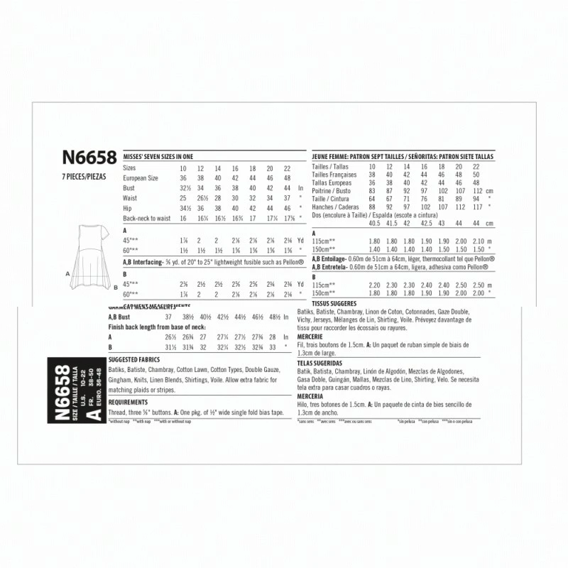 New Look Sewing Pattern N6658 Misses’ Handkerchief Hemmed Top