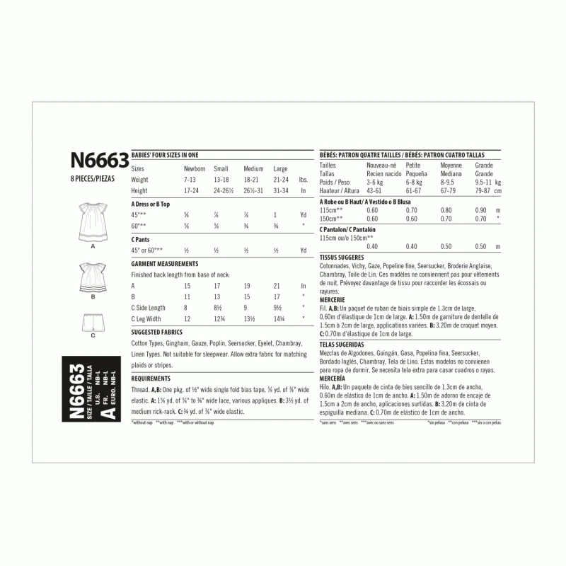 New Look Sewing Pattern N6663 Infants’ Dress, Top & Trousers