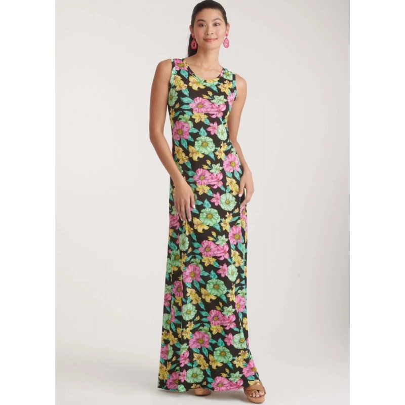 Misses’ Easy To Sew Knit Dress in Two Lengths Easy to sew sleeveless pull-over dress with scoop neckline. Maxi or short length. Designed and sized for stretch knits only. FABRIC SUGGESTIONS: