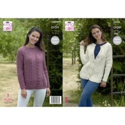King Cole Knitting Pattern Sweater & Cardigan Knitted In Big Value Aran 5299