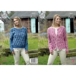 King Cole Knitting Pattern Sweater & Cardigan Knitted In Super Yummy 5974