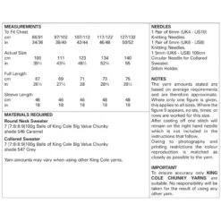 King Cole Knitting Pattern 5819 Men’s Sweater Jumpers In Big Value Chunky