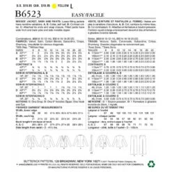 Butterick Sewing Pattern 6523 Misses’ Jacket, Sash And Trousers