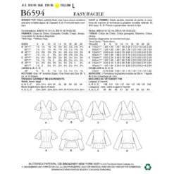 Butterick Sewing Pattern 6594 Misses’ Tops With Sleeve & Overlay Options