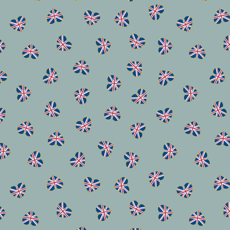 SALE Union Jack Hearts Duck Egg Blue Metallic