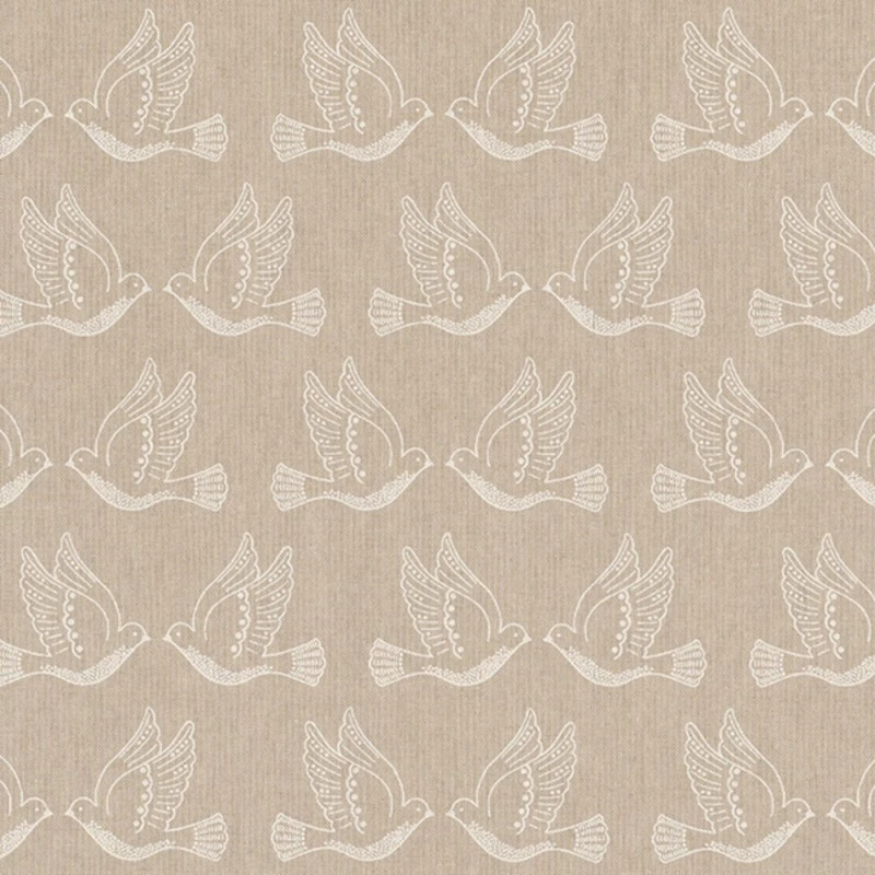 SALE Cotton Rich Linen Look Fabric Doves Birds Animals Upholstery